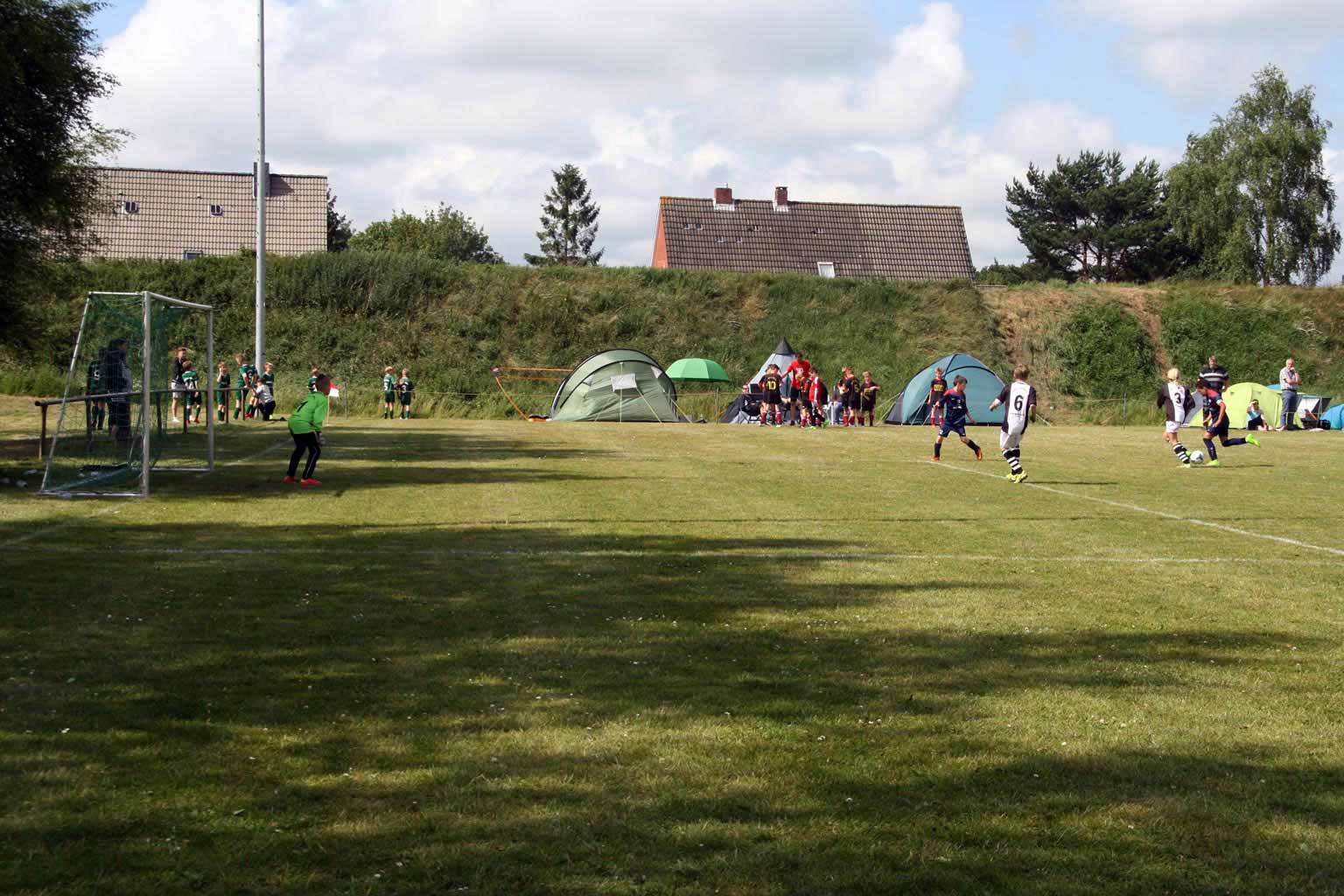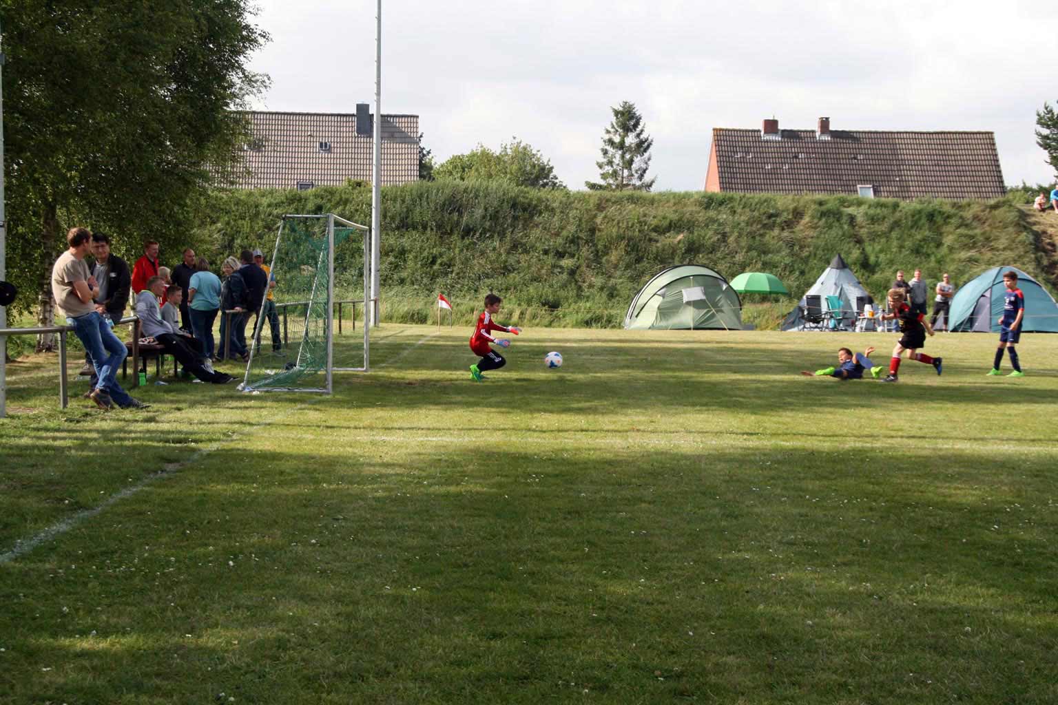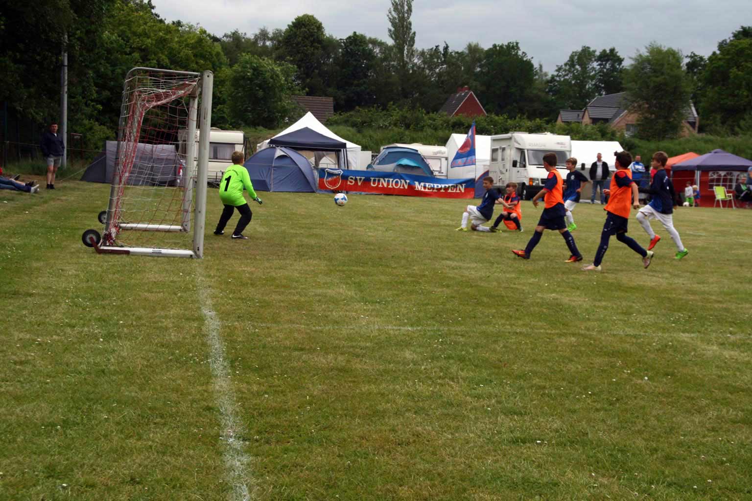 Nach einer vergleichsweise kurzen Nacht begann der Turnierbetrieb am Sonntag nach dem Frühstück dann um 8:00 Uhr mit einem Elfmeterschießen, bei dem jedes Team einen Schützen abstellte und den Elfmeterkönig ermittelte, wohl gemerkt aus elf Metern Entfernung, auf große Tore und mit erwachsenen Torleuten. Für unsere beiden Teams gingen dabei Phil Jona und Patrice ins Rennen, im zweiten Durchlauf war aber Endstation. Eine knappe Viertelstunde später war der Elfmeterkönig dann gefunden, der im fünften Durchgang als einziger der verbliebenen Akteure noch einmal verwandeln konnte.