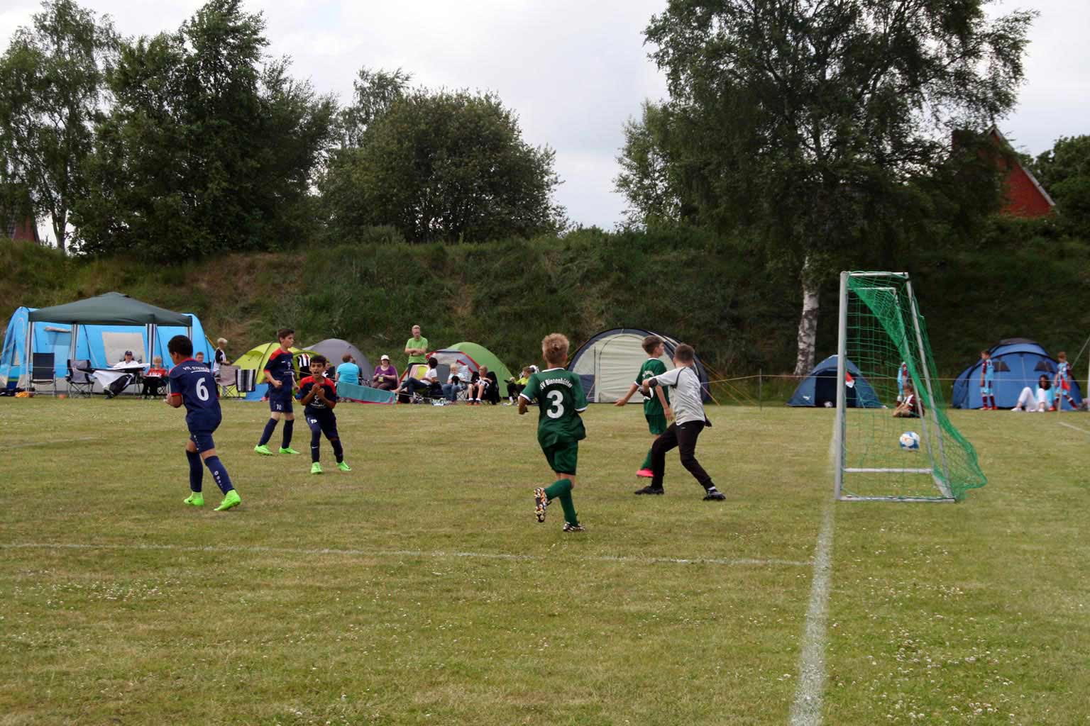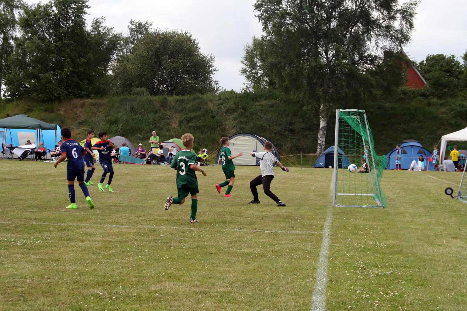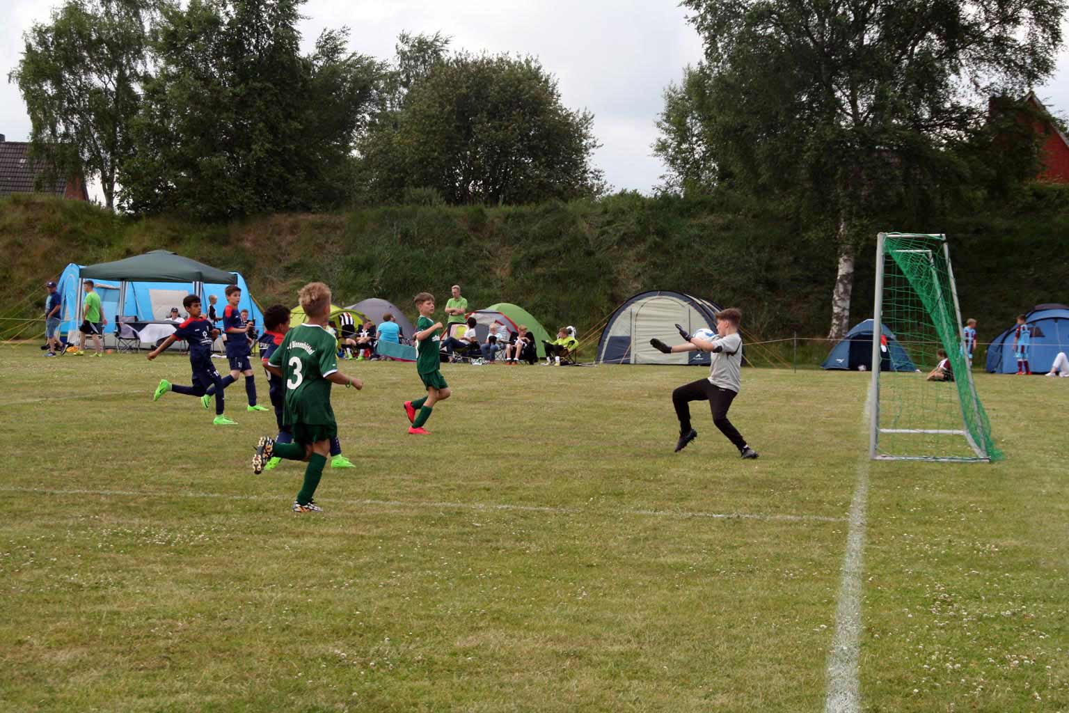 Nach einer vergleichsweise kurzen Nacht begann der Turnierbetrieb am Sonntag nach dem Frühstück dann um 8:00 Uhr mit einem Elfmeterschießen, bei dem jedes Team einen Schützen abstellte und den Elfmeterkönig ermittelte, wohl gemerkt aus elf Metern Entfernung, auf große Tore und mit erwachsenen Torleuten. Für unsere beiden Teams gingen dabei Phil Jona und Patrice ins Rennen, im zweiten Durchlauf war aber Endstation. Eine knappe Viertelstunde später war der Elfmeterkönig dann gefunden, der im fünften Durchgang als einziger der verbliebenen Akteure noch einmal verwandeln konnte.