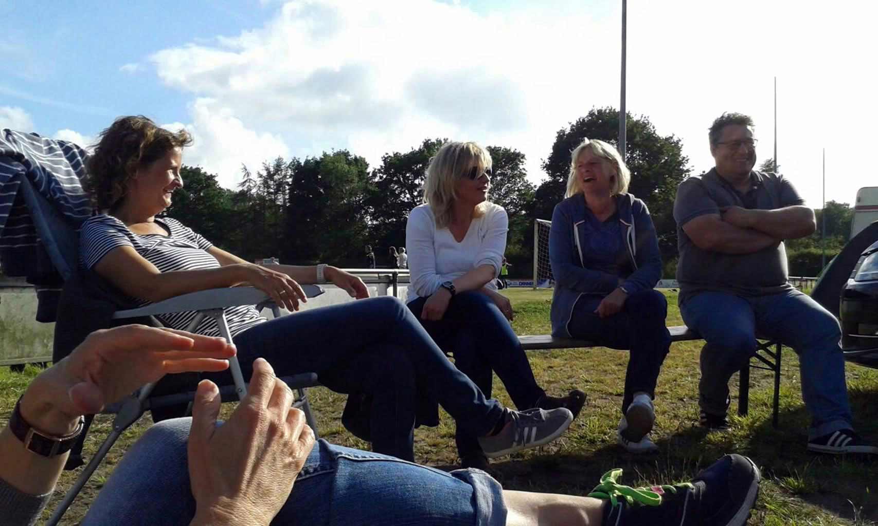 Nachdem der sportliche Teil des ersten Tages damit beendet war, drehte das Rahmenprogramm erst richtig auf. Zunächst einmal wurden alle Teams nebst ihren Anhängern Köstlichkeiten vom Grill serviert, ehe ein wenig „Freizeit“ auf dem Programm stand. Diese nutzten wir für ein gemütliches Beisammensein im Elternkreis in einer insgesamt wirklich tollen Atmosphäre, die nun auch wir vom Trainerteam – nach dem doch etwas stressigeren Nachmittag durch das permanente Coaching von zwei Teams – einmal in Ruhe genießen konnten.